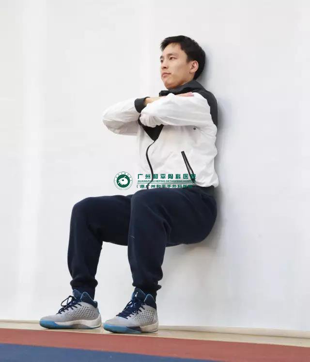 双脚打开,与墙壁保持较短距离,背部保持直立沿墙壁下移,腹部、臀部收紧,有控制的缓慢下蹲,膝盖不要内扣。每次2分钟为一组,每天3-5组。