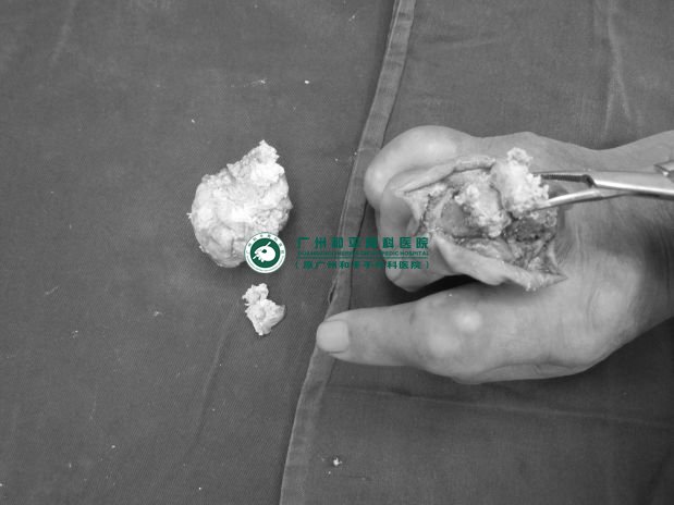 考虑到老伯还患有其他疾病,古主任的手足三科医护团队与麻醉科团队通力合作下,经过4小时的努力,把老伯的双手及前臂痛风石顺利取出,取出来的完整结石多达7块,最大直径约5cm,术后老伯肢体血运良好,接下来只需要控制及维持尿酸到正常水平即可逐渐康复。