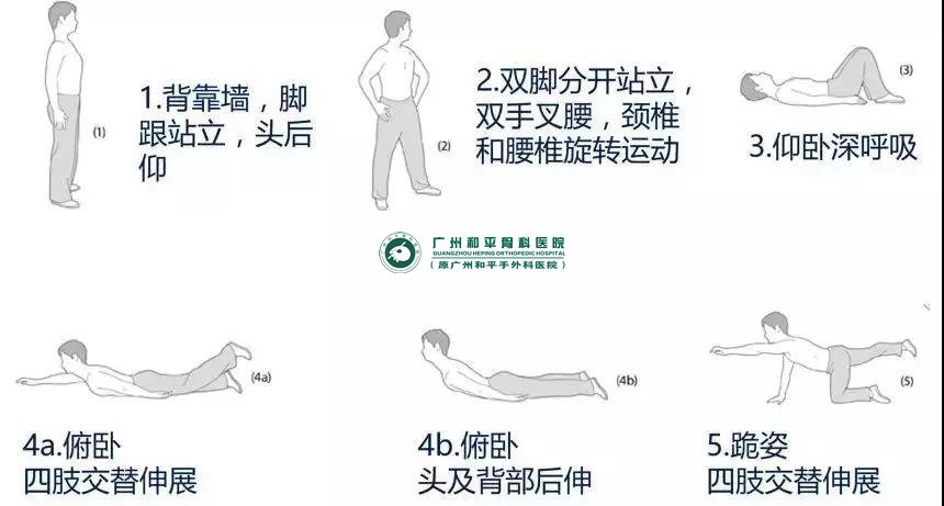 (2)急性期和亚急性期,坚持脊柱、四肢的伸展运动,逐渐增加次数、持续时间及频率。