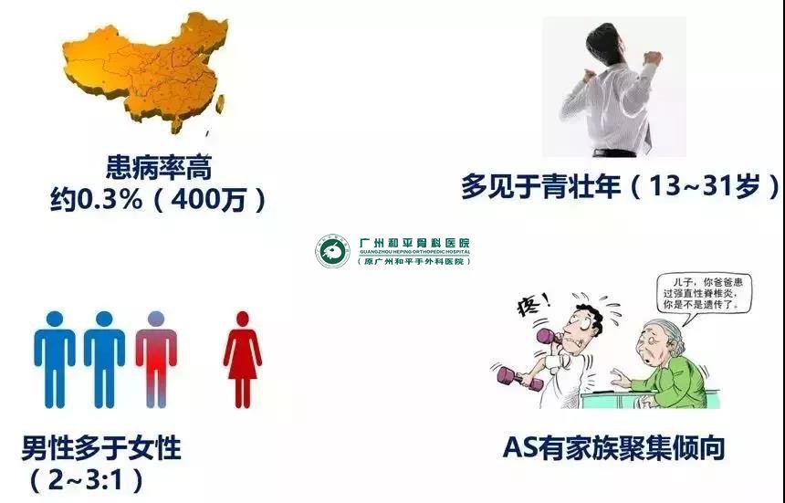 我国强制性脊柱炎患病率较高,多见于青壮年,尤其是男性发病率高于女性,有很明确的家族聚集倾向。