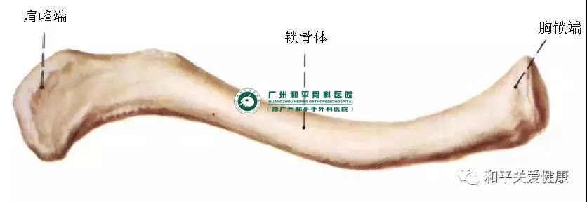锁骨是人体较先发生骨化的一长管状骨,在发育过程中形成两个生理弯曲,外侧段后凸,内侧段前凸,形似横S卧于胸廓顶部前方。