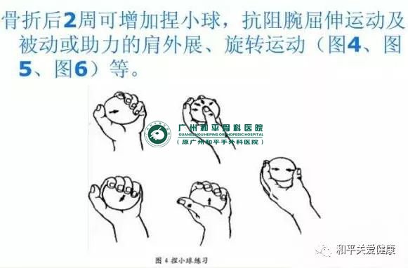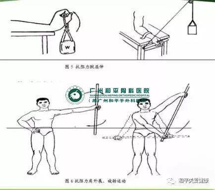 局部固定后应保持挺胸姿势、腕、肘关节各种活动,练习肩关节外展、后伸,如挺胸、双手叉腰动作,禁做肩前屈、内收动作。