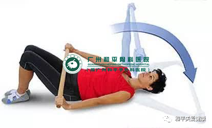 如图躺下,手握一长棍掌面朝下,保持肘部伸直,缓慢上举过头,知道感觉肩部、胸部被拉伸,坚持15-30秒,每天重复2-4次。