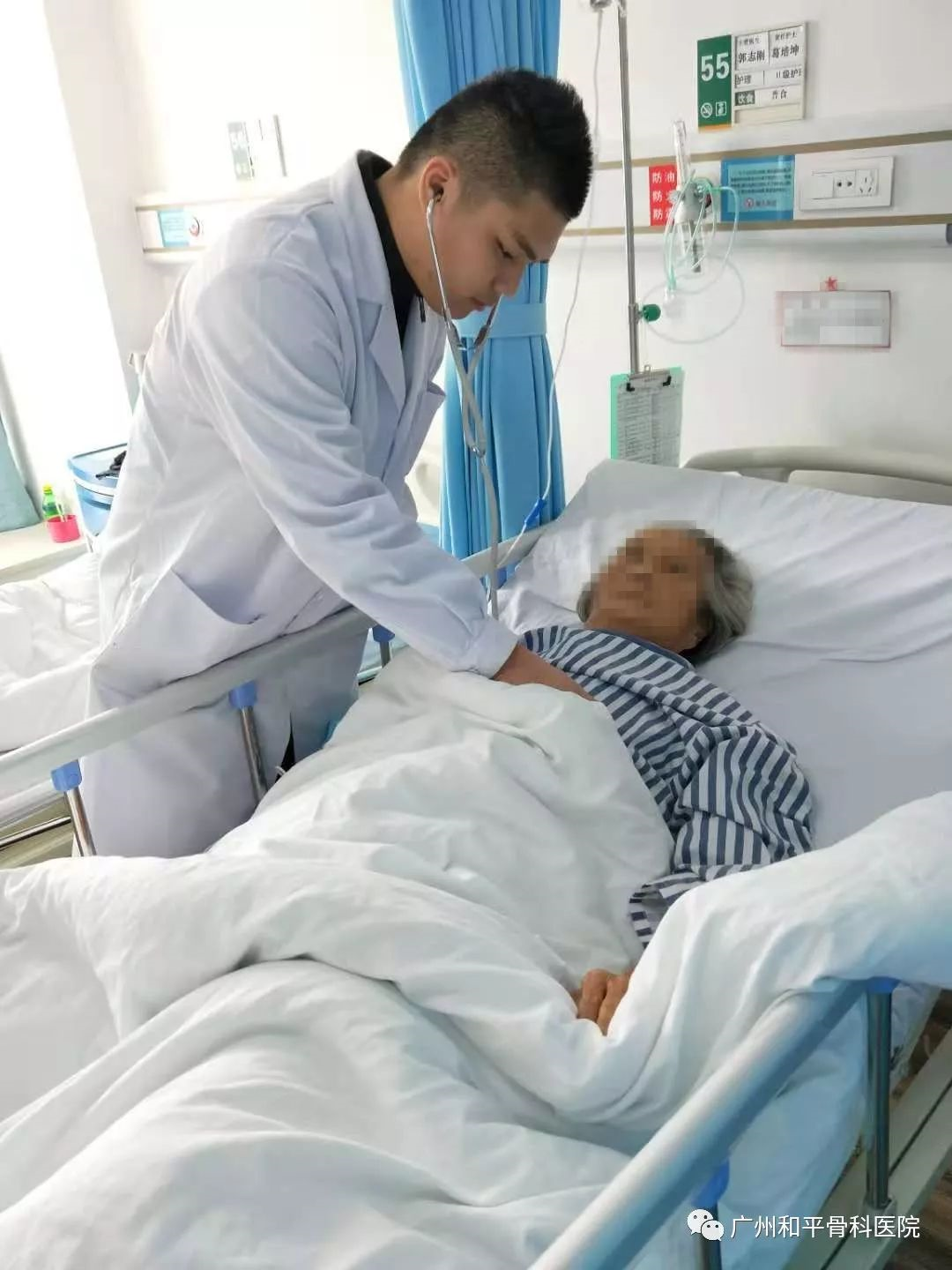 家属为求进一步治疗把陈奶奶送来了广州和平骨科医院(原广州和平手外科医院),经过初步诊断,患者为左侧股骨颈骨折。12月6日,我院骨科的胡铁山主任、王亮医生、杨小文医生和郭志刚医生在硬膜外麻+腰麻下为陈奶奶做了“左侧人工全髋关节置换术”,手术过程中髋关节活动良好,手术非常顺利。术后医护人员给陈奶奶进行左下肢中立位、心电监护、吸氧、预防感染、加强股四头肌及踝关节功能锻炼,目前陈奶奶的伤口敷料干燥,在骨科各医护人员的常规护理下,她术后恢复良好,精神状态也非常好。她说感觉好很多了。