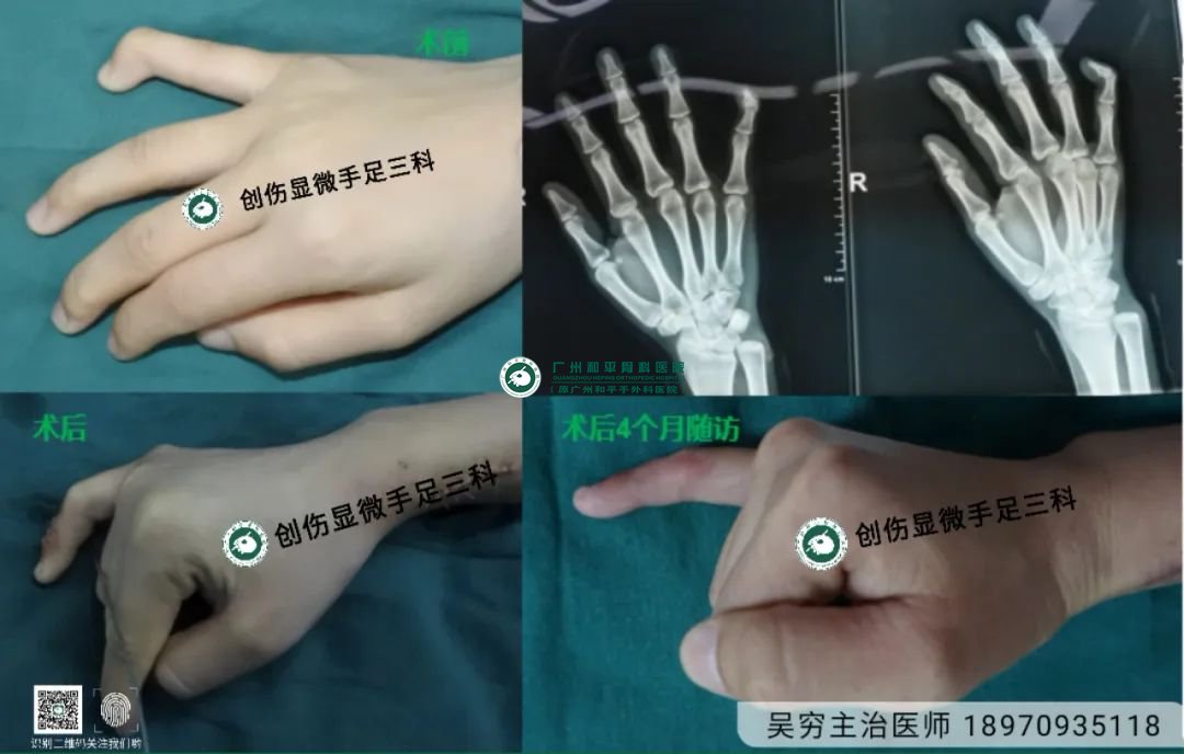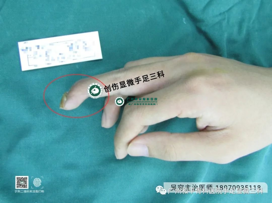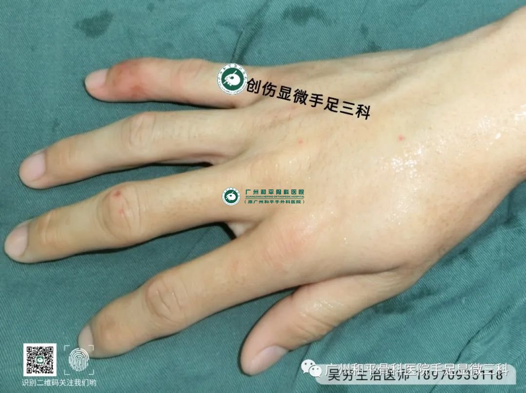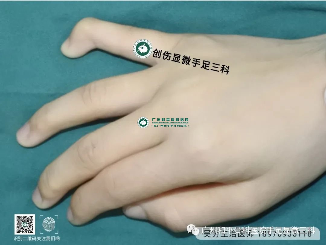 患者女性,24岁,右小指外伤后锤状指14年余,施行带桡骨茎突腱骨瓣修复锤状指手术,术后康复良好!