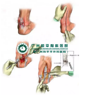 手术治疗,急性跟腱断裂可通过手术修复获得成功的治疗,慢性跟腱断裂的治疗比急性患者困难的多,因为肌腱通常比正常延长或遗留一大而固定的裂隙方式而愈合,以致保守治疗改善跟腱功能的机会很少。一般而言,需手术处理。