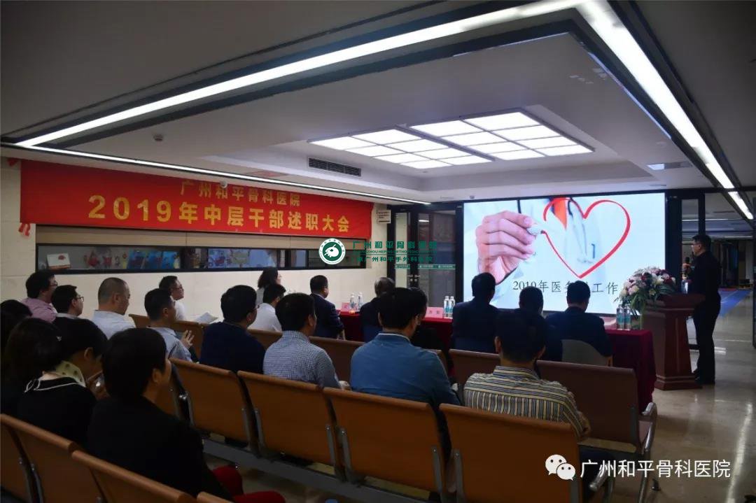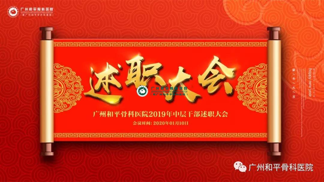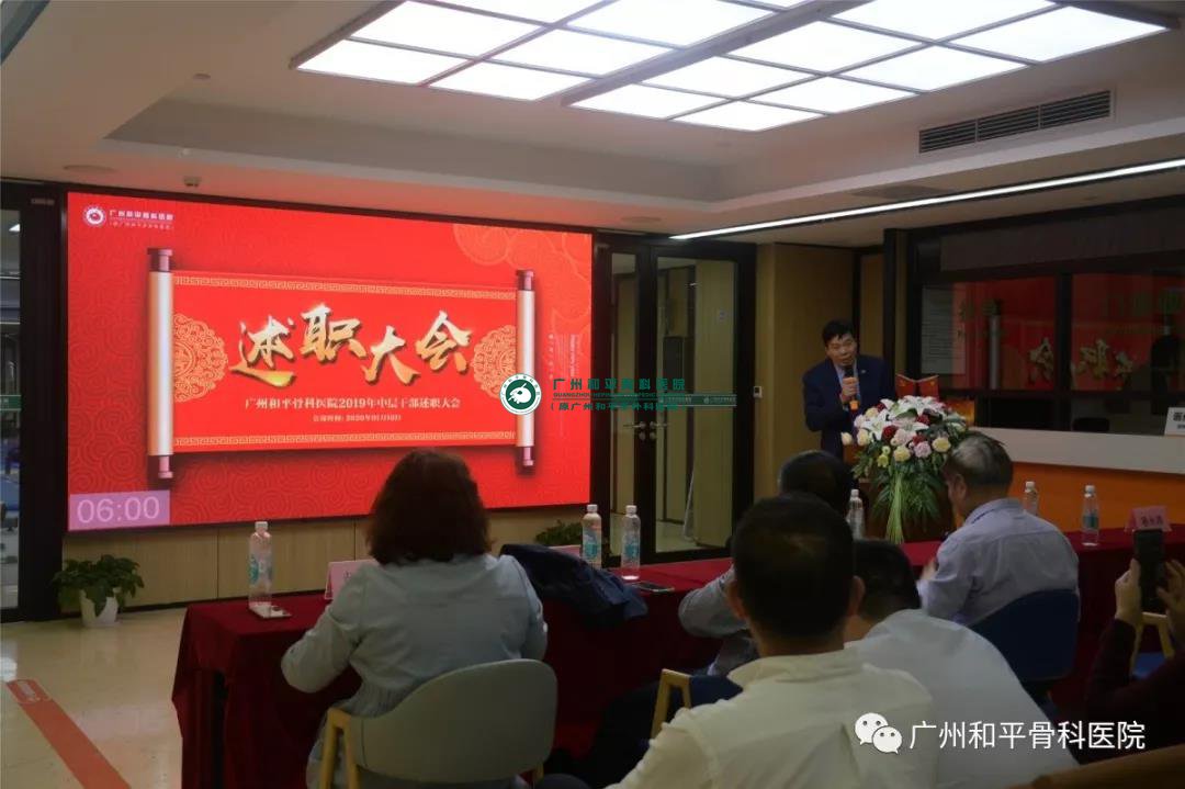 1月10日下午,广州和平骨科医院2019年中层干部述职大会在我院二楼门诊大厅隆重举行。我院梁敏院长、黄东院长、谢永涛院长、特邀嘉宾黄勤教授及全体员工约两百多人参加了此次中层干部述职大会,我院各科室中层干部逐一详细对科室业务、科室队伍建设、科室工作开展等情况以及取得的经验、存在的不足进行了全面总结,并对2020年的工作作了部署安排。会中院领导分别对中层干部的述职报告做了点评,对我院过去一年的经历与成绩表示充分肯定,并对医院2020年发展提出美好愿望,激励全院员工同心逐梦,为医院的发展添砖加瓦。
