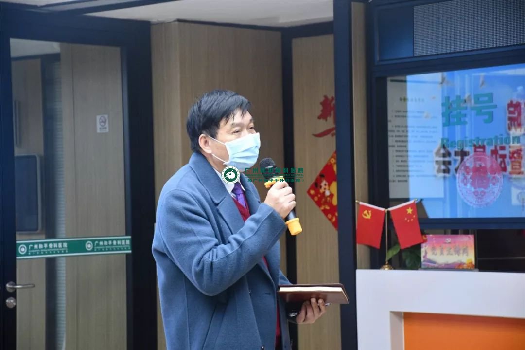 2月12日下午,广州和平骨科医院支援海珠区防疫人员培训暨动员大会在二楼大厅召开。院长黄东、执行院长谢永涛到场给我院的志愿者们加油,医务科季志刚主任主持会议,15名防疫志愿者参加了此次培训暨动员大会,他们是一群勇敢的“逆行者”,积极投身疫情防控工作中,用行动在发扬着“患者至上、良医为本”的和平精神,他们作为和平的先锋队伍勇敢地走在执行这项光荣任务的前头。我们要为这些和平家人们鼓掌,为他们加油打气,给他们奋战防疫一线做好最坚实的后盾!